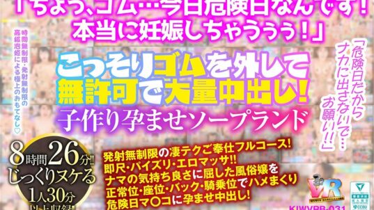 (kiwvrb00031)出演| | 【VR】「危険日だからナカに出さないで…お願い!!」こっそりゴムを外して無許可で大量中出し!子作り孕ませソープランド|4時間以上作品 ハイクオリティVR VR専用 独占配信 ベスト・総集編 ローション・オイル キャバ嬢・風俗嬢 中出し 巨乳 美少女・こあらVR極ベストの人気作:FANZA配信:2024-11-29]【エロ動画まとめ】