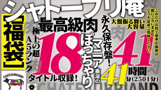 16時間以上作品 (h_1133nine01002)出演| | [福袋]シャトーブリ庵 極上の超A5ランク最高級肉18タイトル収録!ぽっちゃりマニア垂涎の永久保存盤!大盤振る舞い大容量41時間41分(2501分)|16時間以上作品 ハイビジョン セット商品 ベスト・総集編 福袋・の人気作:FANZA配信:2024-01-12]【エロ動画まとめ】